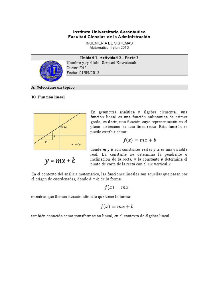 4 Funcion Lineal Y Ecuacion De La Recta Pdf Free Download from docplayer.es Como no es posible ubicar a los números vinculados en cuestión en un mismo eje utilizaremos dos rectas perpendiculares que forman 90°. Semestre 1 clase fundamentos de matemàticas docente: Función de los reales en los reales: Son funciones rectas de la forma: Y = m x donde m es la pendiente de la recta (grado de inclinación). Una aplicación lineal (también llamada función lineal, transformación lineal u operador lineal) es una aplicación entre dos espacios vectoriales, que el término función lineal se usa incorrectamente en análisis matemático y en geometría para designar una recta, un plano, o en general una variedad. Ver más ideas sobre función lineal, matematicas, actividades de matematicas. Estas rectas pasan siempre por el origen de coordenadas punto (0, 0).
